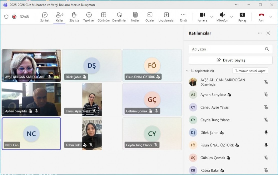 Mezun öğrenci etkinliği, Muhasebe ve Vergi Bölümü 1 ve 2.sınıf öğrencileri ve bölüm öğretim elemanlarının katılımı ile 25 Aralık 2025 Perşembe günü saat 13.00’de çevrimiçi olarak gerçekleştirildi.