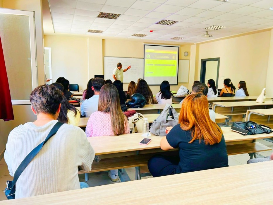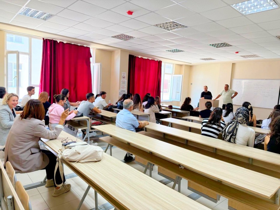 Oryantasyon eğitiminde öğrencilere derslerin işleyişi, sınavlar, staj işlemleri, öğrenci kulüpleri, 3+1 eğitim sistemi ve mezuniyet koşulları gibi okul hayatları boyunca gerekli olacak tüm teorik bilgileri içeren sunum yapılmıştır.