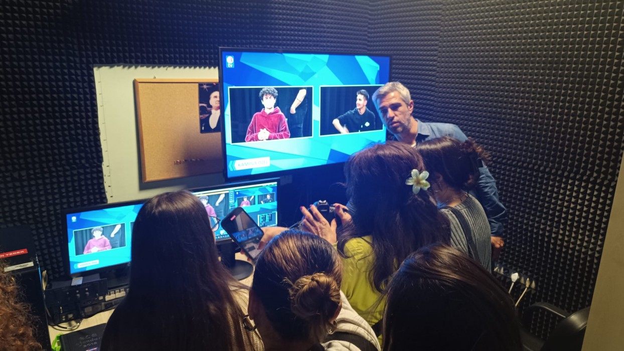 Öğrencilerin ders dışı zamanlarda uygulama yapabilmeleri, projelerinde medya desteği verilebilmesi gibi olanaklar hakkında bilgiler paylaşıldı. Uygulama alanları olan stüdyolar gezdirilerek tanıtıldı.