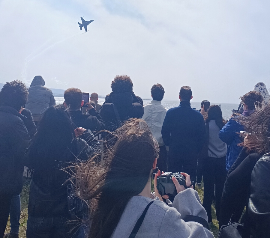 Görsel İşitsel Teknikler ve Medya Yapımcılığı Programı Fotoğrafçılık ve Kameramanlık Programı öğrencileri, 18 Mart Şehitleri Anma Günü ve Çanakkale Deniz Zaferi etkinliklerine ders kapsamında katıldı. Hafta boyunca süren etkinliklere giderek fotoğraf ve video çekmesi istenen öğrenciler, fotoğraf ile ilgili dersleri kapsamında 17 Mart 2026 günü gerçekleştirilen Türk Hava Kuvvetleri'nin gururu SoloTürk'ün gösterisini fotoğraflamak üzere öğretim elemanları ile birlikte Anadolu Hamidiye Tabyasına gitti. Soğuk ve rüzgarlı havada tabyayı dolduran yüzlerce kişiyle birlikte gösteriyi izleyen öğrenciler, fotoğraf dersinde öğrendiklerini pratikte deneyimleme şansı yakaladı. SoloTürk'ün nefes kesen hareketlerini fotoğraflamaya çalışan öğrenciler, sınıf ortamı dışında öğrenme deneyimi yaşadı.