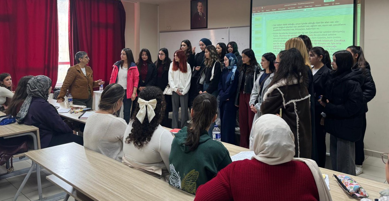 Çanakkale Sosyal Bilimler Meslek Yüksekokulu Müdür Yardımcısı Öğr. Gör. Derya Kılıç’ın ağırladığı lise öğrencileri, Çocuk Gelişimi Programı sınıfını da dersin de bir bölümüne eşlik etti. Çocuk Gelişimi programı üniversitelilerle tanışıp, sohbet eden lise öğrencileri; Yüksekokul ile ilgili bilgileri ÇOMÜ öğrencilerden bizzat aldı. Çocuk Gelişimi Programı’ndan Öğr. Gör. Sema Güzey Kandemir’in atölyeyi gezdirip, bölümdeki dersler ve çalışmalarla ilgili verdiği gezi, öğrencilere tercih ve önlisans eğitimi sonrası lisans eğitimine geçiş ile ilgili bilgiler de aktarıldı.